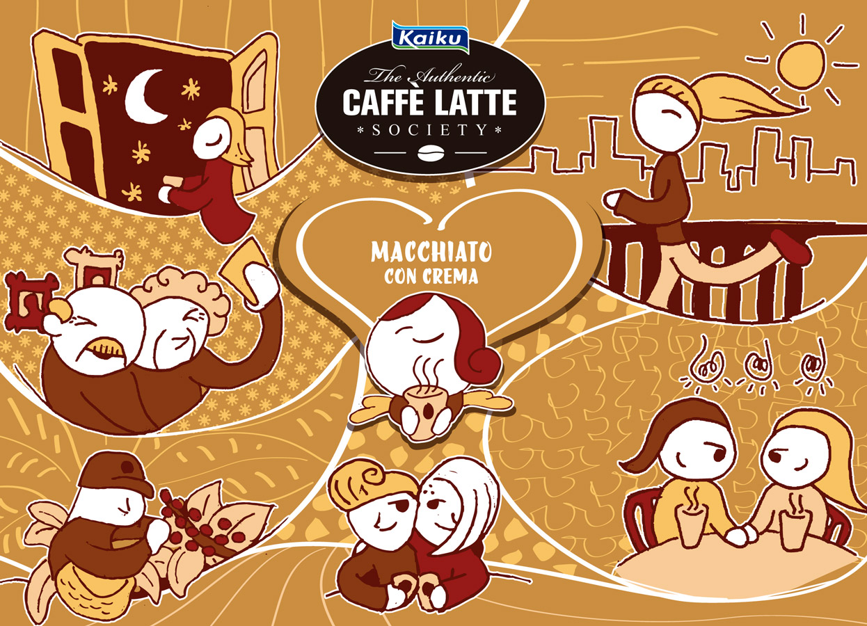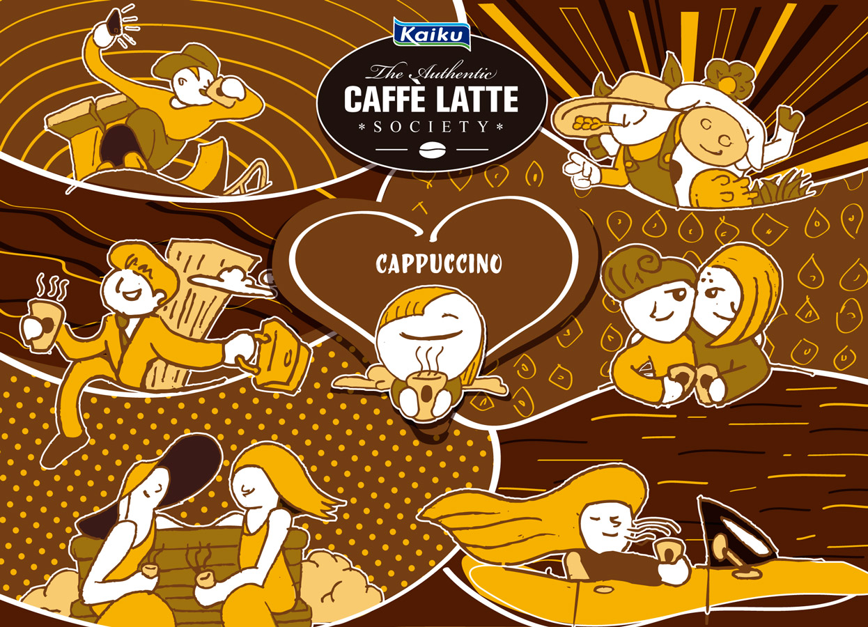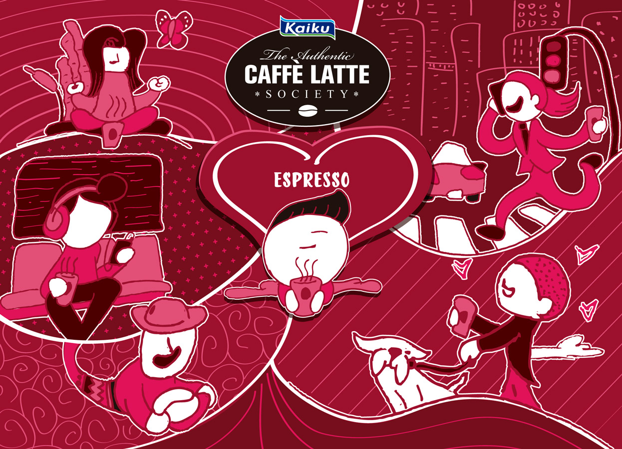 Participación en 2020 en el concurso de ilustracion y diseño de las famosas y sabrosas tazas de coffee latte de Kaiku. Concurso con jurado de Kaiku y Yorokobu. Participación en el rediseño de 3 sabores, Cappuccino, Espresso y Macchiato. Para los 3 packs realice un diseño basado en diferentes estilos de consumidores del producto. El estilo escogido era juvenil y moderno realizado con ilustración a mano y posteriormente tratada a vector.