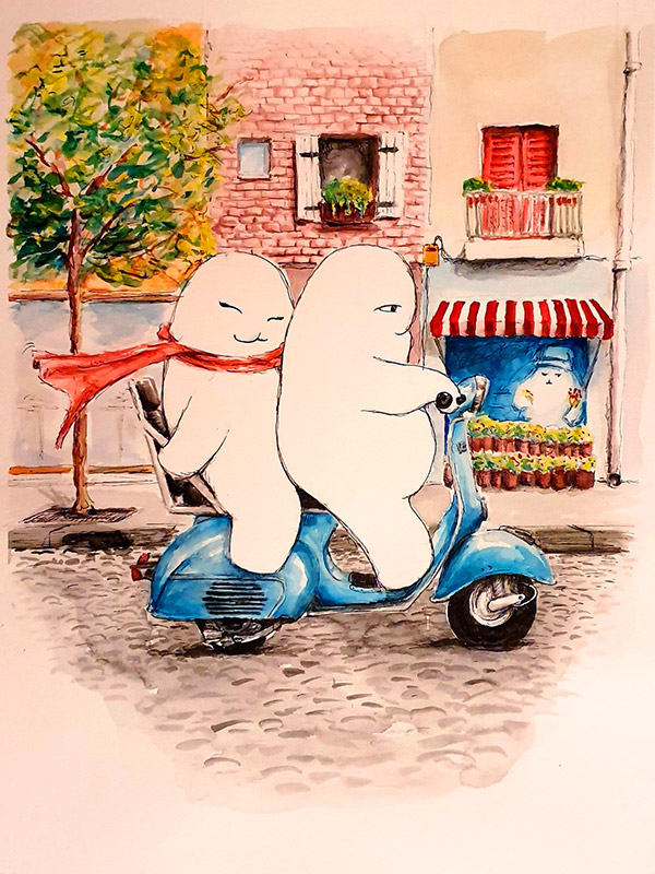 Ilustración en acuarela y pilot en homenaje al amor. Incluido Video de como se hizo