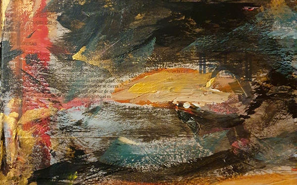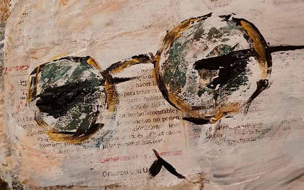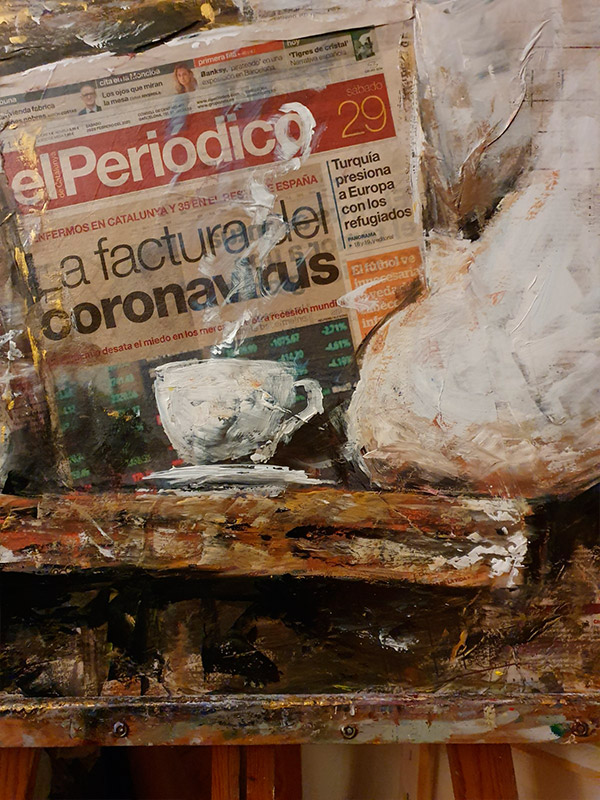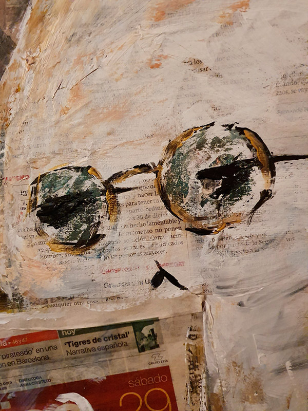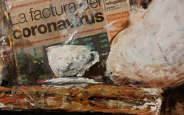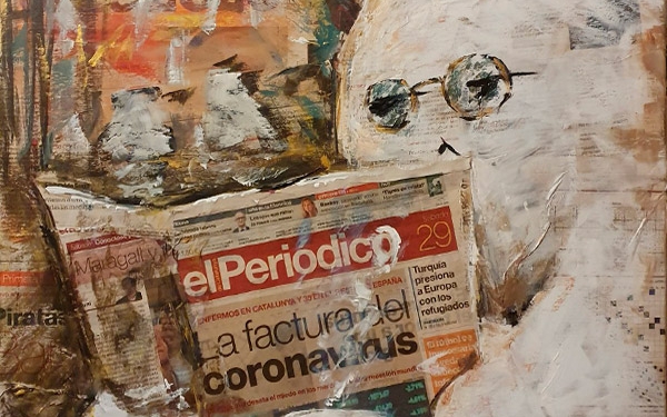 Ilustración en collage y acrílico realizada en la época del coronavirus y la importancia de la información o desinformación.