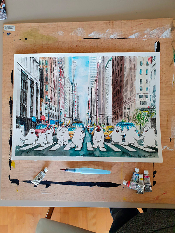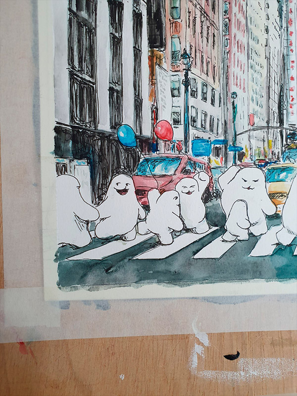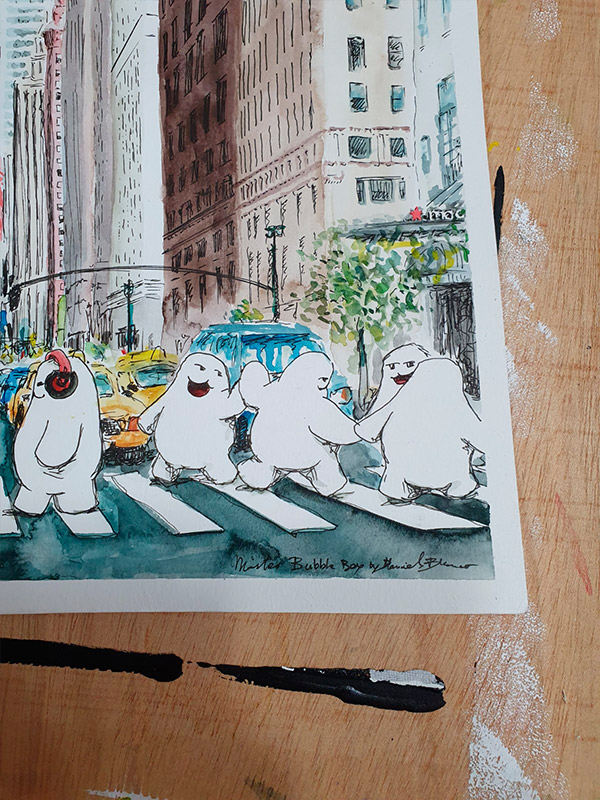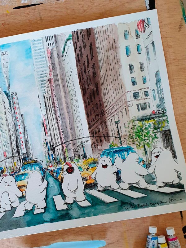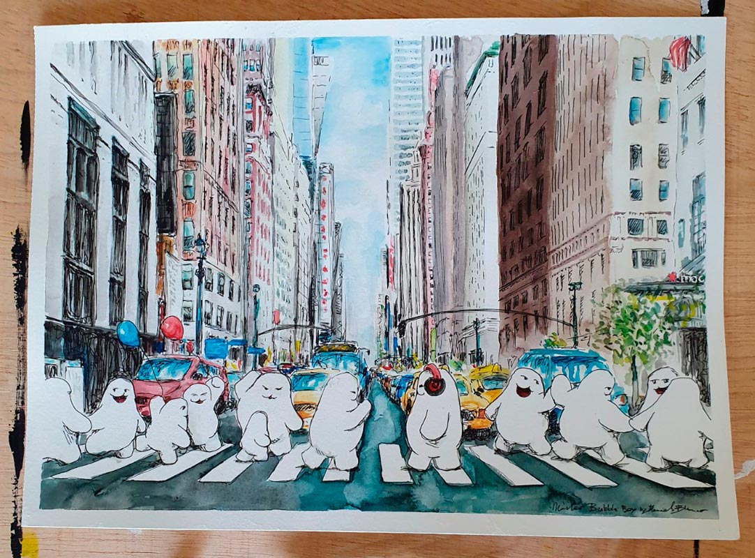 Ilustración en acuarela y pilot en ciudad de Nueva York
