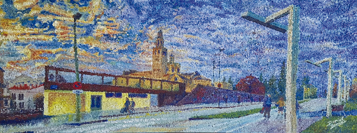 Cuadro puntillista realizado en óleo del Monestir de Sant Cugat
