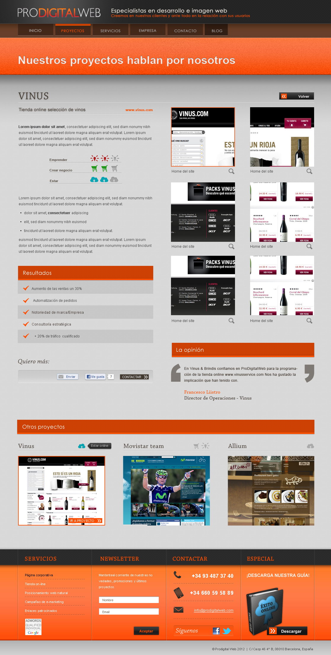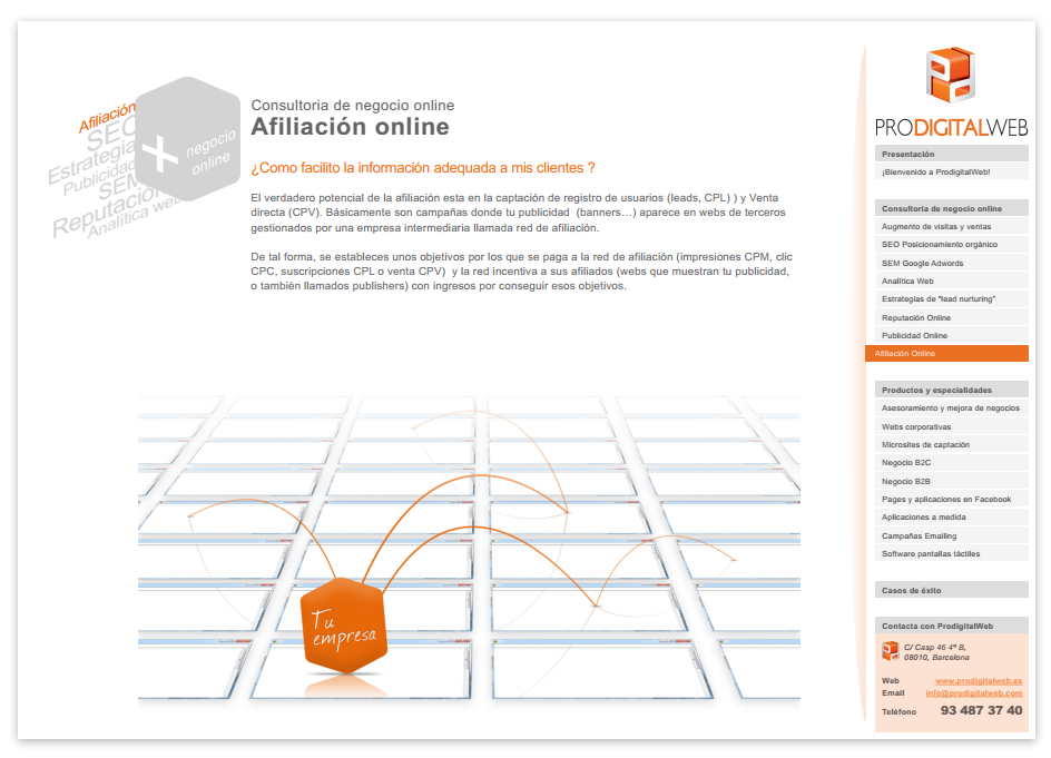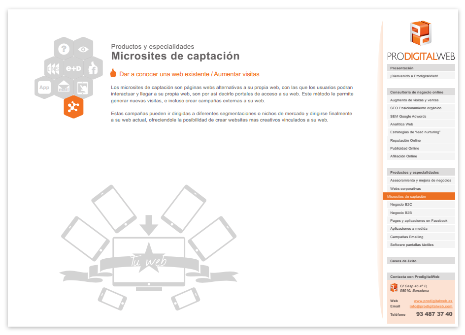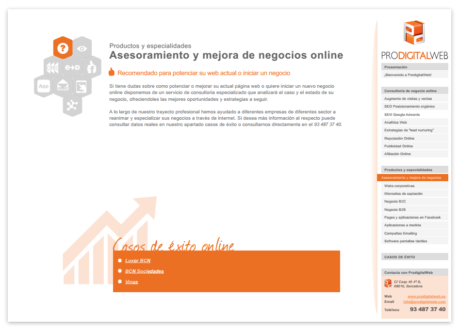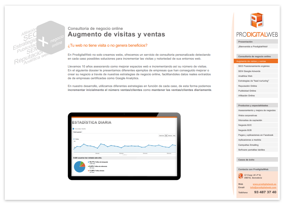 ProdigitalWeb es una empresa de diseño de páginas web corporativas y marketing online. En ella cree propuestas para diferentes catalogos y papelerías corporativas promocionales y web. Los catálogos y página web mostrada a continuación son un pequeño ejemplo del material preparado.